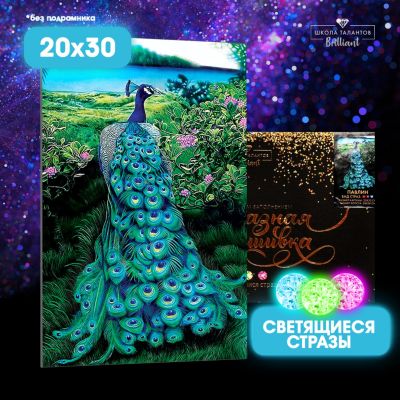 Алмазная мозаика 20х30 7476790 со светящимися стразами Павлин